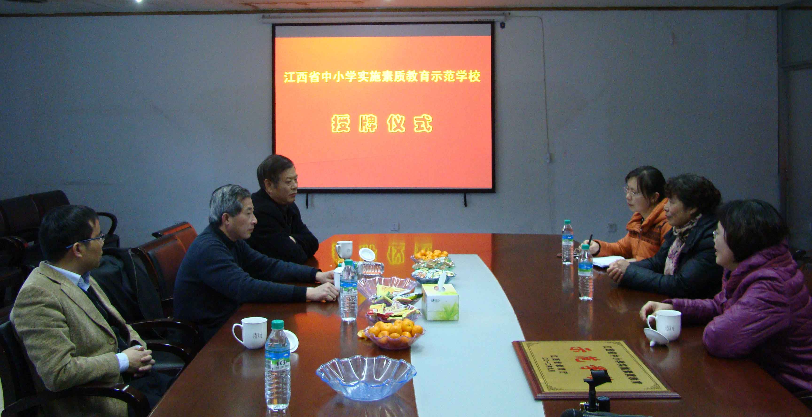 12月13日,江西省人民政府教育督导室胡主任一行莅临黄色直播 ,为黄色直播 成为“江西省中小学实施素质教育示范学校”进行授牌。