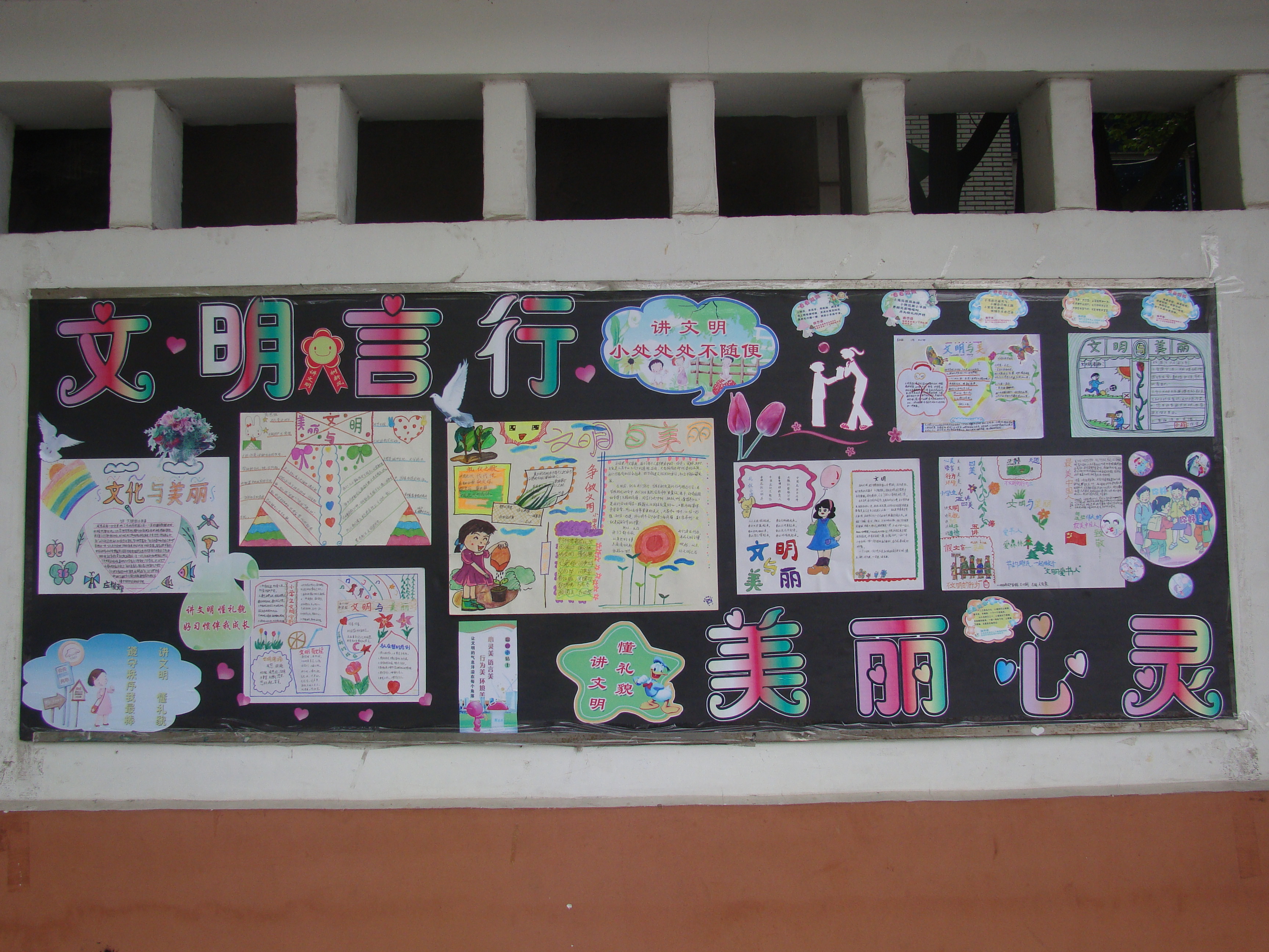学做最美小学生,争当美德好少年。黄色直播 五月艺术墙报主题:文明少年 美丽心灵。