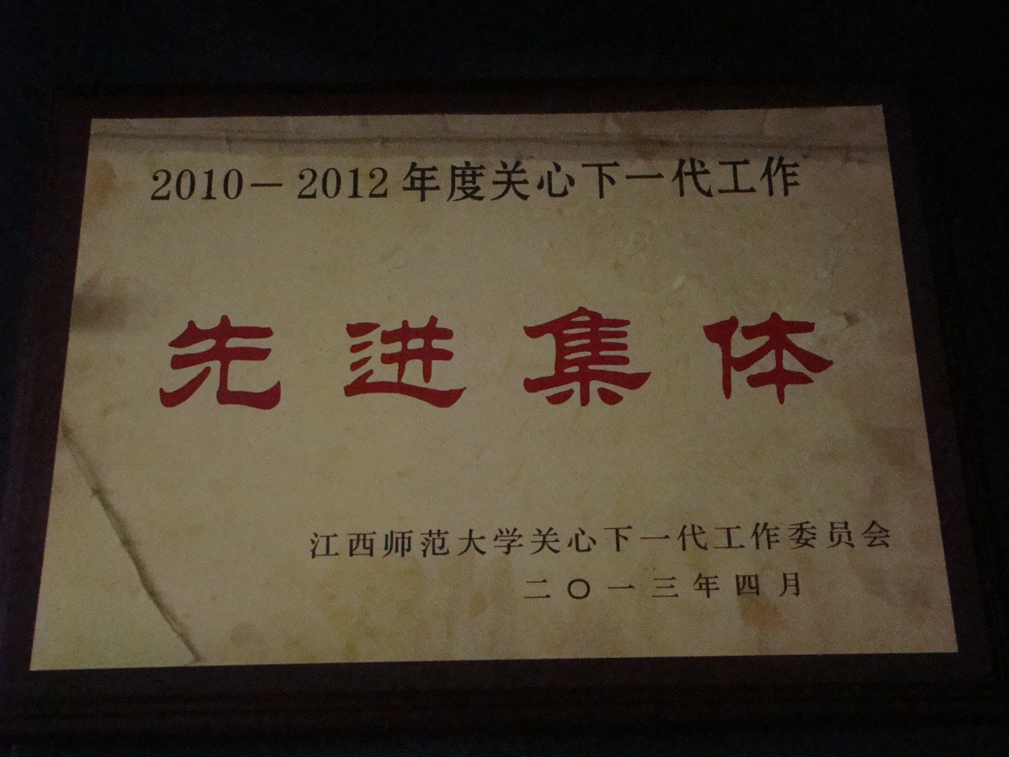 被江西师范大学关心下一代工作委员会授予“2010—2012年度关心下一代先进集体”