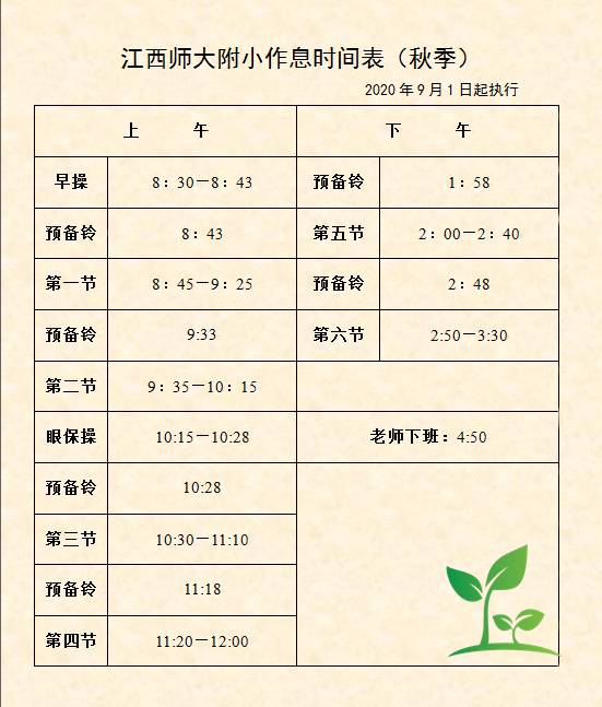 温馨提示:按照秋季作息时间正式上课,学校开始提供午餐