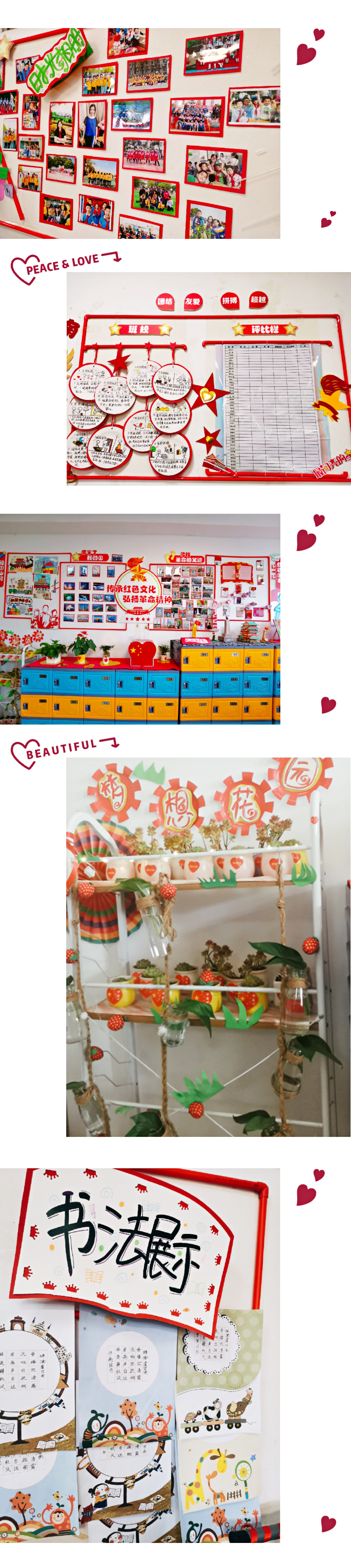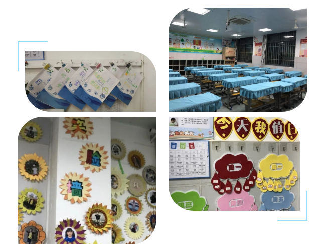 教室的每一个角落都有班级文化特色的体现,温馨雅致、有序美观、色彩协调,充满着浓浓的文化气息。对于广大学生来说无不是一种美的享受、爱的熏陶,是一种润物细无声的教育和启迪。