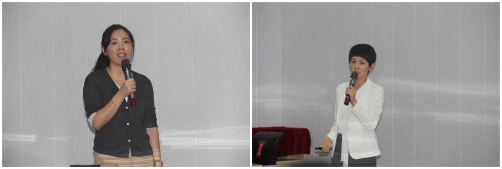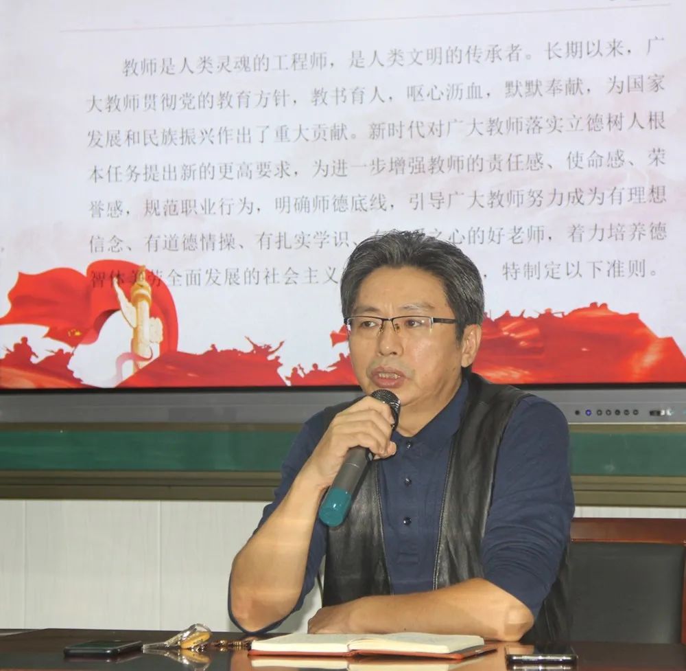 首先邀请了两位教师做师德师风发言,一位是党员教师秦小艳同志,一位是教师代表向桂辛同志。