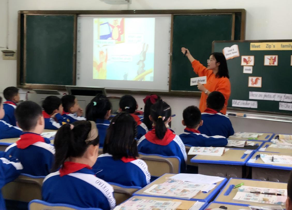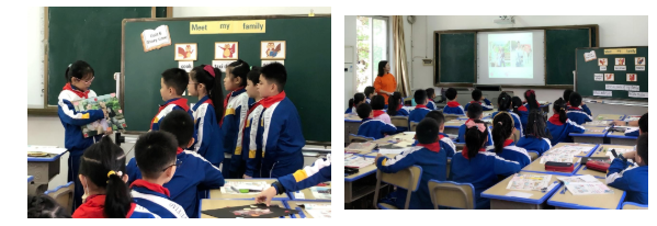 在读故事前,杨莹老师从自己的家庭出发,巧妙的延伸至学生们的家庭,并充分走进了学生们的生活,从而让学生勇于谈论自己的家庭成员及相应职业,使得课堂充满了浓浓的生活气息,拉近学生与文本,与老师的距离。