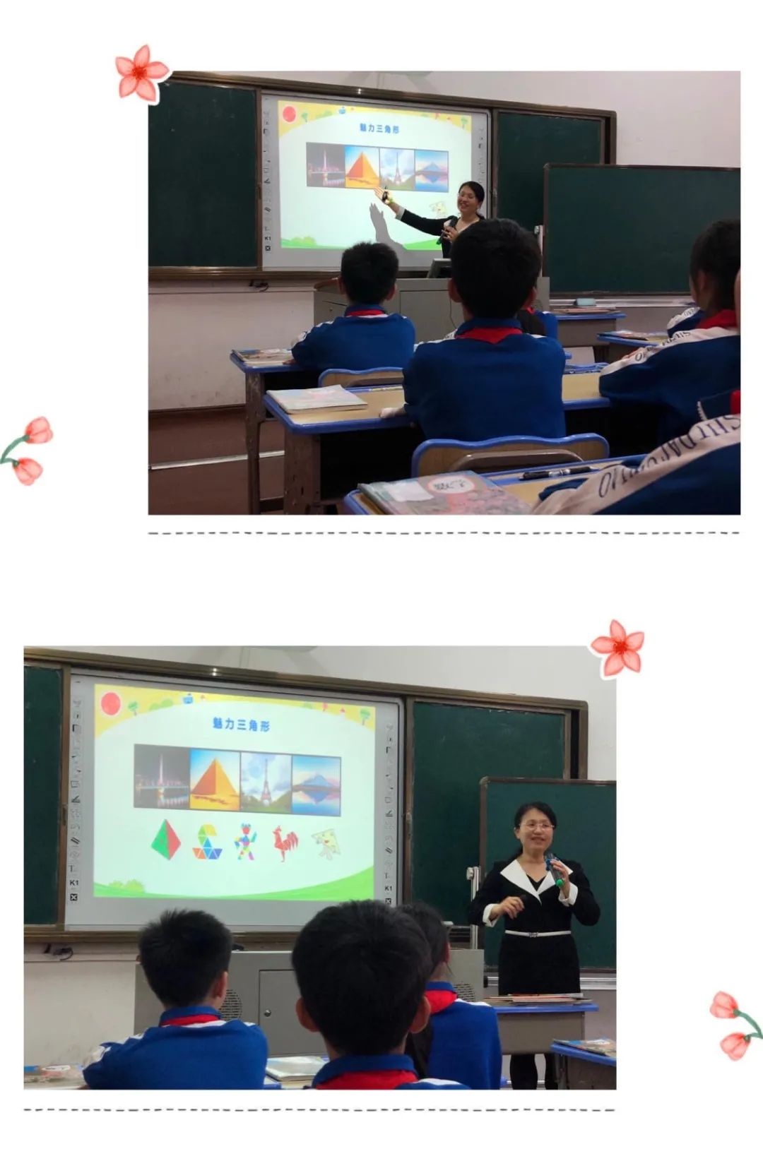 一节让人记忆犹新的公开课,短短的40分钟,学生不断的思考探索,通过思维的转化,寻找新知与旧知之间的联系,在合作交流、动手操作中学会了“三角形的面积”,最重要的是认识了幽默风趣、极具亲和力的邱老师。特别是有一道题,学生们全军覆没(没有注意到高和底要一一对应),但大家学的很开心,认识到这个问题今后再也不会犯了。原来课堂上的错误,也可以同样精彩,让人终生难忘,真好!