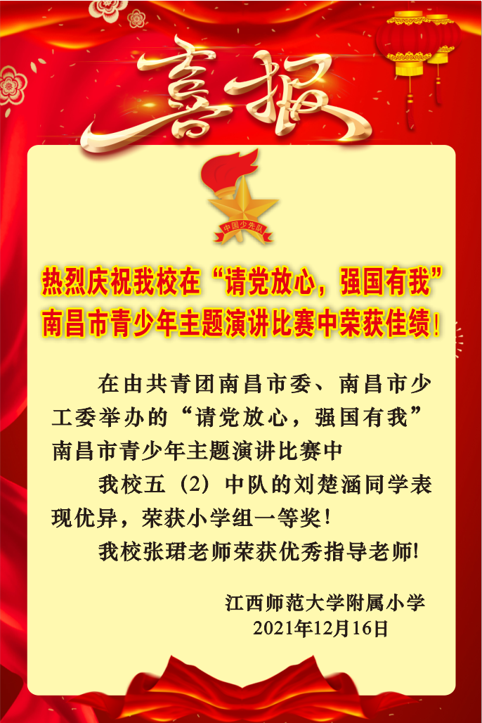 喜报∣黄色直播 在“请党放心,强国有我”南昌市青少年主题演讲比赛中荣获佳绩