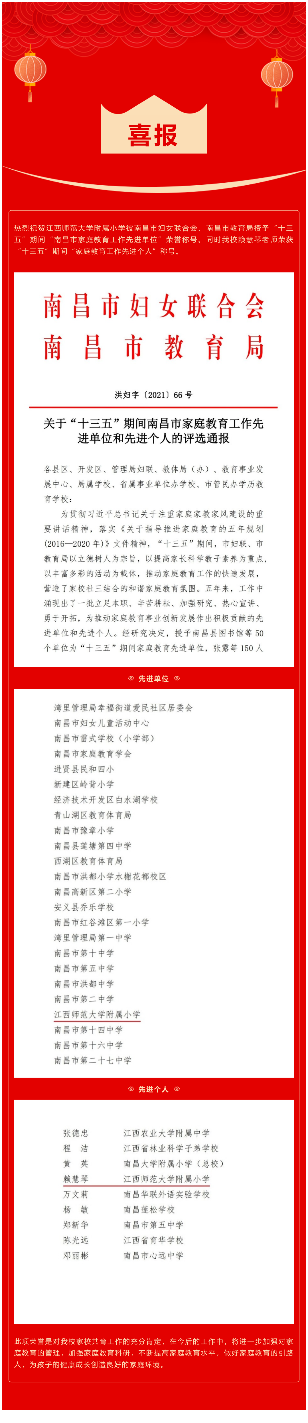 喜报〡热烈祝贺 黄色直播 荣获南昌市家庭教育工作先进单位和先进个人