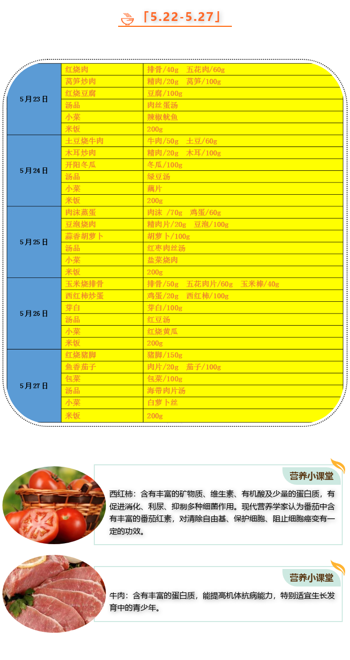 师大附小2022年5月22日-5月27日食谱