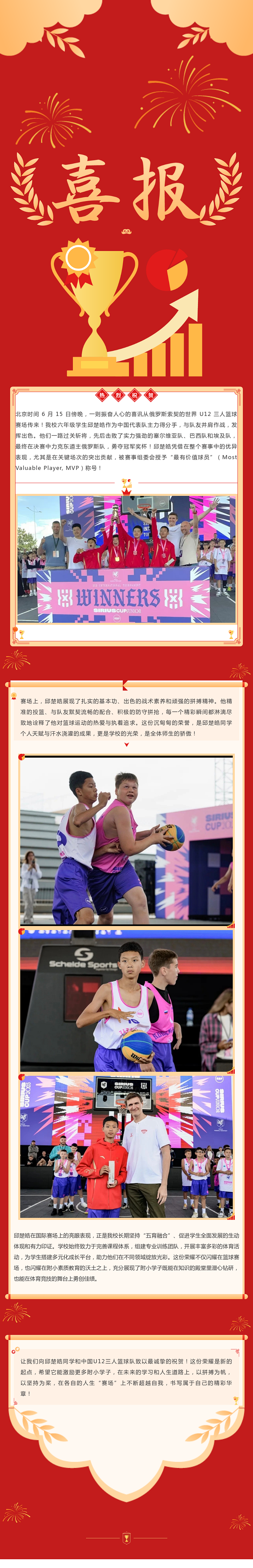 喜报|骄傲!黄色直播 学子闪耀国际赛场,勇夺世界 U12 三人篮球赛冠军并荣膺MVP